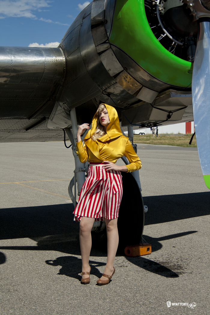This outfit was Maggie’s grandmother’s, vintage that she actually wore during the 40s. I love the tailored lines and Maggie looks wonderful in it. Her smile and commanding attitude pull off the look and make her look straight out of World War II. The anniversary of Pearl Harbor was just a few days ago and this set of pictures very much reminds me of the strength and sacrifice of those involved. So many sacrificed, so many died, and so many lived to regroup and stand again.
